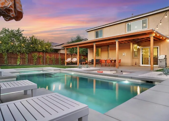 Located within 10 minutes' drive of the Indian Spotlight 29 Casino, Colorful House With Amazing Backyard Villa Coachella offers a patio with views of the mountain. Offering a swimming pool, this Coachella holiday home invites guests to visit the Fantasy Springs Resort Casino, located 2.8 km away.